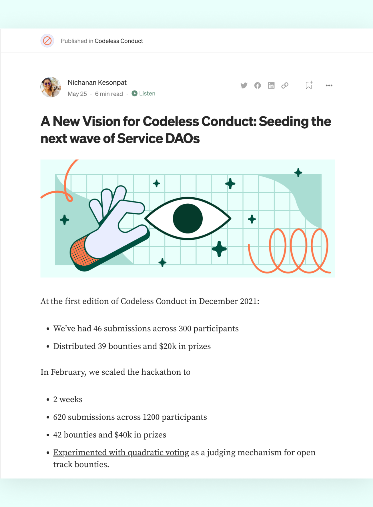 The open web is growing rapidly, increasing the need for contributors with diverse skill sets. Codeless Conduct is a series of virtual events that embraced this sentiment by curating talks, hangouts, and bounties for codeless creators.