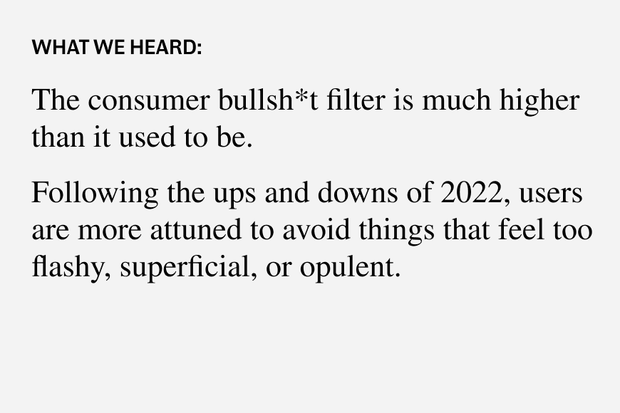 Through our Define the Vibe workshop, we discovered the creative territory that resonated most—literally showing transparency. Inspired by clear, see-through tech from the ’90s and driven by our commitment to openness, this narrative foundation shaped the brand’s design and messaging.